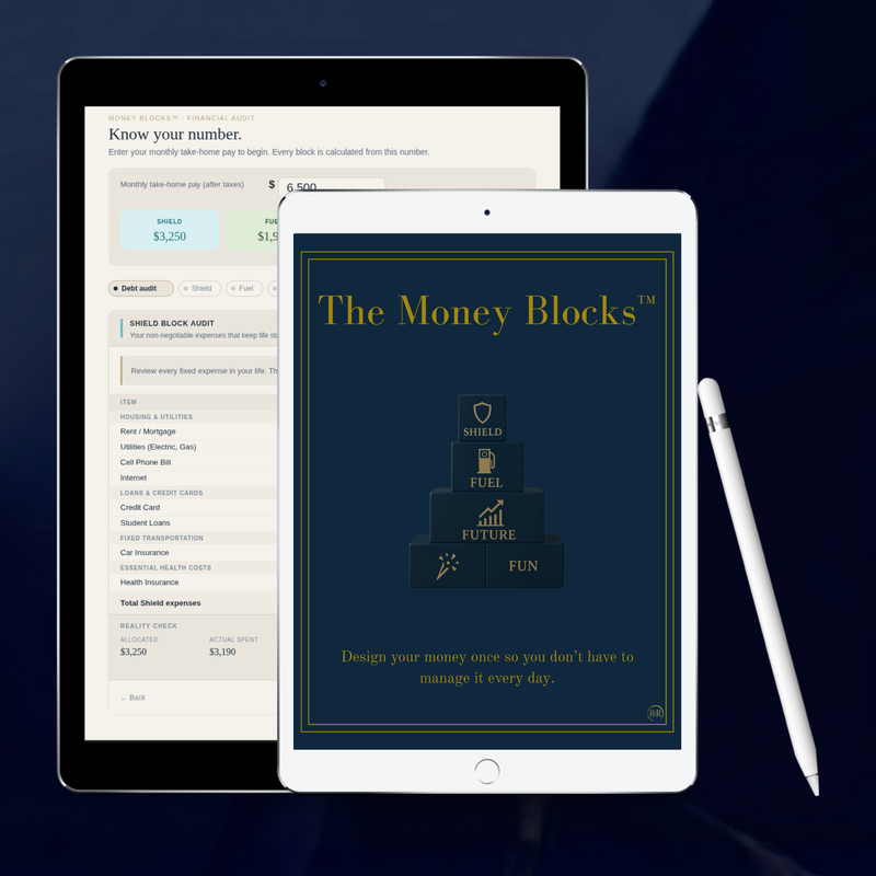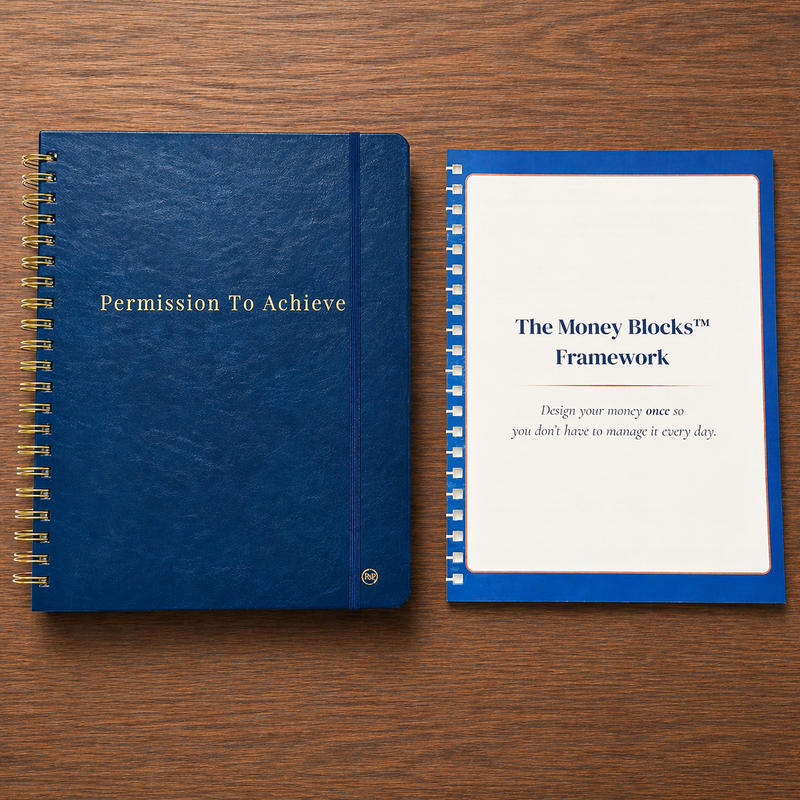 Money Blocks™ is the financial clarity framework inside the Permission to Achieve™ system. It helps you align your income with your goals, priorities, and 90-day plan — without tracking every receipt or managing your money every day.